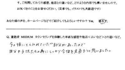 仕事・転職・商売繁盛・人事・採用・パワハラ・セクハラ・DV・人間関係・恋愛・結婚・不倫をやめたい・離婚・歳の差婚・家庭問題・同性愛・子ども問題・友人関係・不登校・登校拒否・引きこもり・トラウマ・メンタルヘルス・除霊・縁切り・祈願・祈祷・開運・前世・オーラ・霊障・軌道修正・難奇病救済・エクソシスト・お祓い・供養・ペット供養 など、霊視鑑定いたします。